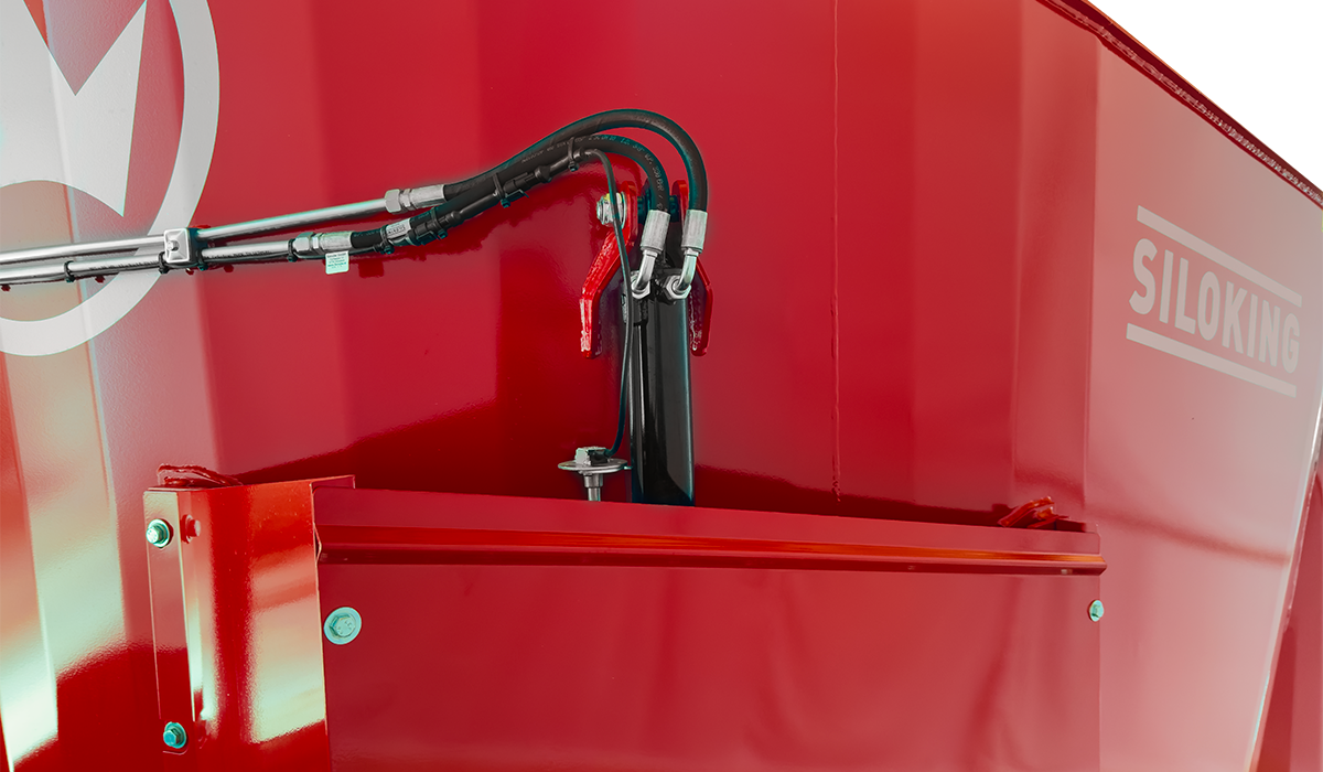 The SILOKING mineral feed hopper enables clean, fast and precise addition of mineral feed directly into the mixing hopper. The conveying auger is controlled by means of a push button in the immediate vicinity. The ergonomic positioning and robust design make daily work noticeably easier and minimize losses.